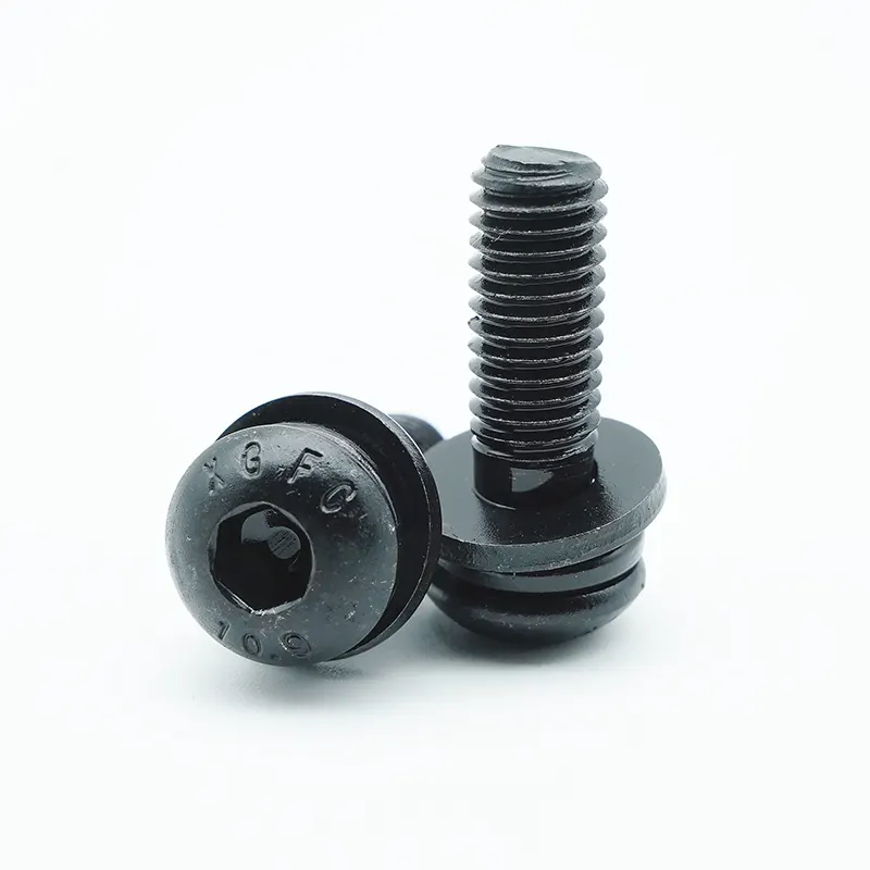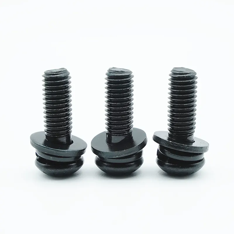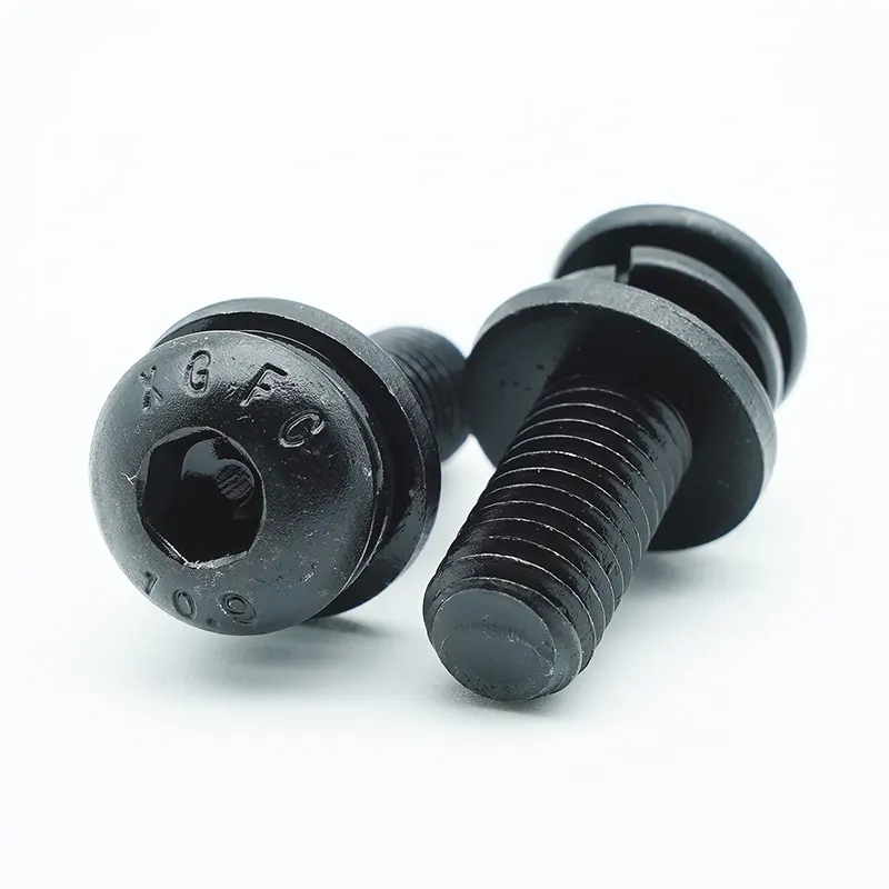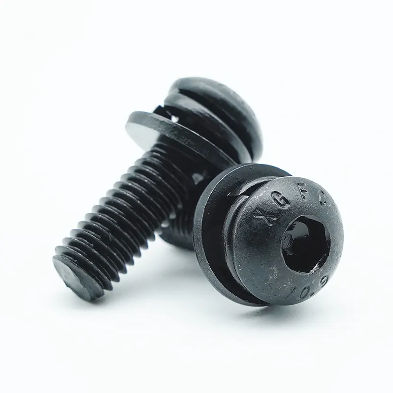 Pernos de cabeza hexadecimal de óxido negroLos tornillos combinados del cabezal del botón Hex de óxido negro de Jinsixi están ensamblados de fábrica con tornillos, arandelas planas y arandelas de resorte. Los tornillos proporcionan la fuerza de fijación principal, las lavadoras planas se encuentran entre la superficie del conector y las arandelas de resorte, y las arandelas de resorte se encuentran entre las arandelas planas y las cabezas de los tornillos. Después del ensamblaje, las lavadoras no se caerán fácilmente de los tornillos, lo que facilita el transporte, la almacenamiento y el uso, mientras ahorra mucho tiempo y esfuerzo de ensamblaje.